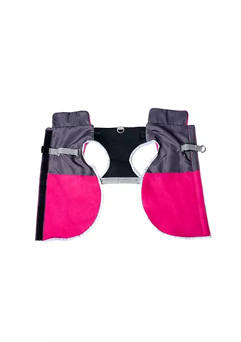 This 2 in one Travel Vest is made of water repellent and nano tech fleece. Built into the vest is a harness so there is no fumbling around as to protecting your dog from the elements and controlling them when walking.