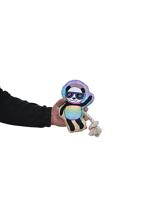 Inspired by the magical and cool nature of children, the large Space Panda plush toy is great for all-size dogs. Filled with stuffing crinkle paper and a squeaker your dog can roll around and get snuggly or tug at it as well.