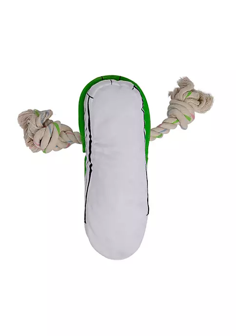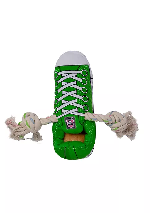 Inspired by our owners love of bright colored tennis shoes these Plush Dog Toys are perfect for all size dogs. With a thick rope for tugging, these toys offer chewing and comfort in one single toy.Thermally printed on the fabric. these cool shoe designs will look good in any home.