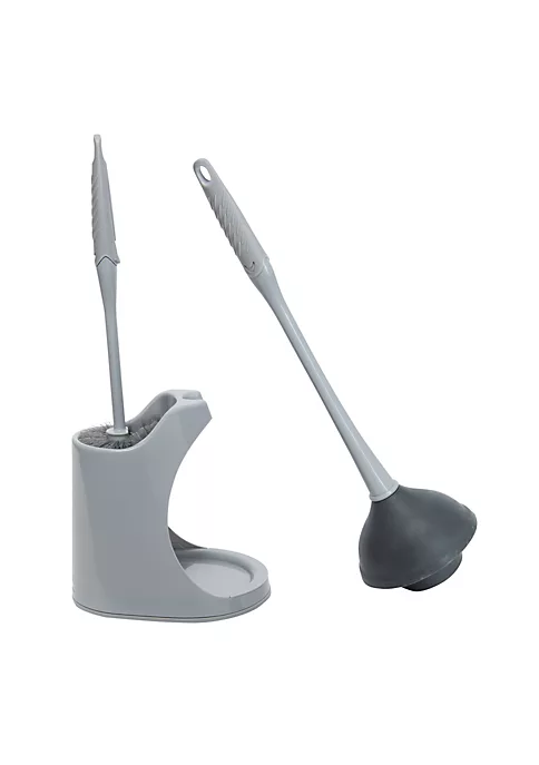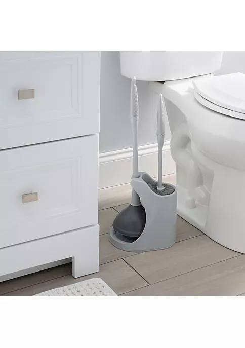 Keep the necessary cleaning tools within reach with the Bath Bliss 2-in-1 bowl brush and toilet plunger combo set. The space saving design allows you to purchase the 2 biggest necessities for your bathroom in 1 set. The toilet brush is heavy duty and designed to reach those hard to clean areas. The easy grip handles on both the toilet brush and plunger make it easy to do the job! The canister can easily fit behind your toilet, in a corner, cabinet or away in a closet.