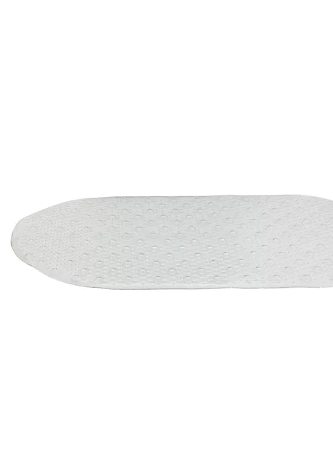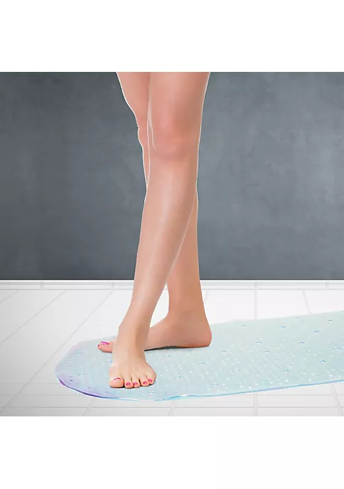 Keep safety and aesthetics in mind with this beautiful Bath Bliss Bath Mat. With a suction cup base, this bath mat is designed to stay in place, creating an anti-slip environment in your tub and shower. The massaging surface is great for your feet, making your shower feel like a spa. The self-draining oval design prevents water back up and dries fast.