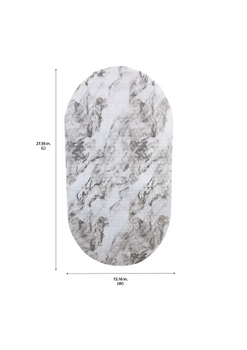 Keep safety and aesthetics in mind with this beautiful Bath Bliss Bath Mat. With a suction cup base, this bath mat is designed to stay in place, creating an anti-slip environment in your tub and shower. The bubble surface is great for your feet, making your shower feel like a spa. The self-draining oval design prevents water back up and dries fast. Every shower could use a Bath Bliss bath mat!