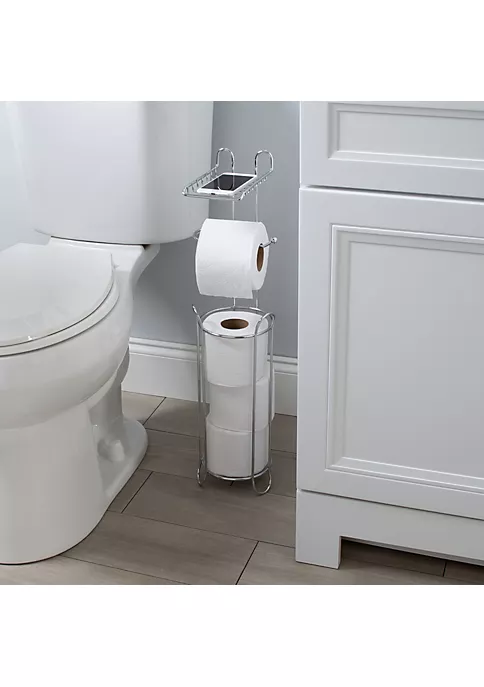 The Bath Bliss Royal Toilet Paper Holder and Dispenser is both stylish and functional, providing a practical solution for your storage needs. The dispenser and reserve holds a total of 4 large toilet paper rolls, one on the dispenser and 3 in the reserve. The iron construction and rust resistant finish makes this product long lasting and durable. The reserve is complete with a built in cell phone holder to help prevent any phones from falling into the toilet! It offers a way to store extra rolls of toilet paper neatly in small bathroom spaces. As long as your reserve is fully stocked the fear of running out of toilet paper is now gone!