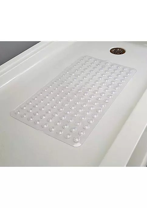 Keep your family safe with this Bath Bliss non-slip bath mat. With its non-slip textured surface falls and slips are prevented in the bath or shower. The sanitized PVC material prevents mildew growth keeping your bathroom fresh and clean. The crystal clear design makes this mat blend in nicely with your bathroom decor. This bath mat is made for safety , comfort and built to last.