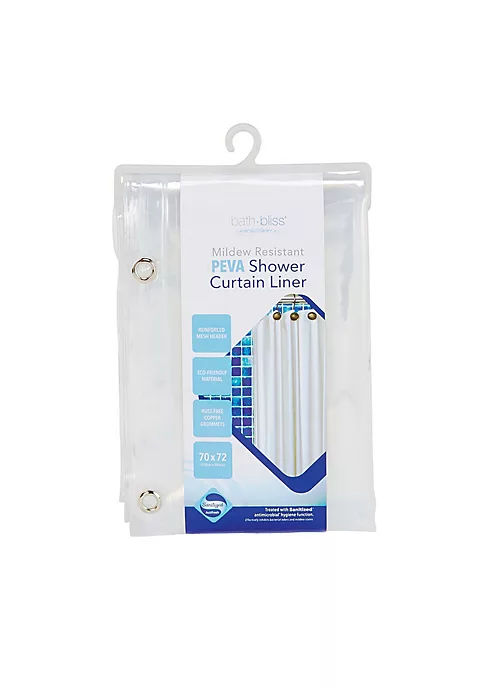 Bath Bliss’ Sanitized 10 Gauge Peva Super Clear Shower Liner is water-repellent, clear, and features 12 rust-proof metal grommets for easy hanging. It dries quick and wipes clean with a damp cloth. 100% PEVA Completely PVC free, meaning our product is no chlorinated and won’t cause headaches like other shower liners. It is also mildew resistant and it’s heavy duty material makes it long lasting. PROP 65 compliant.