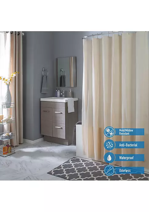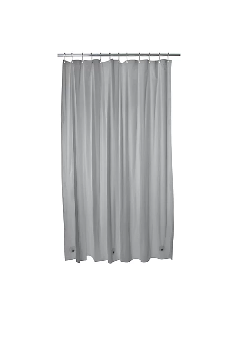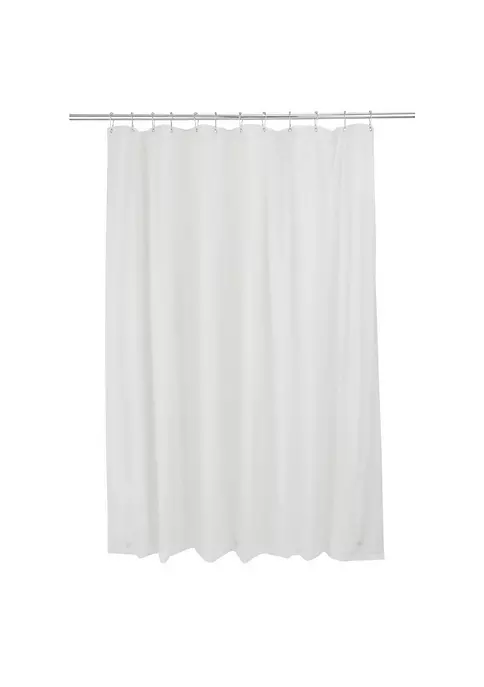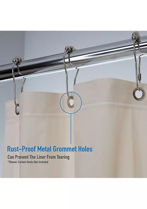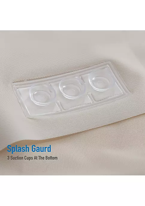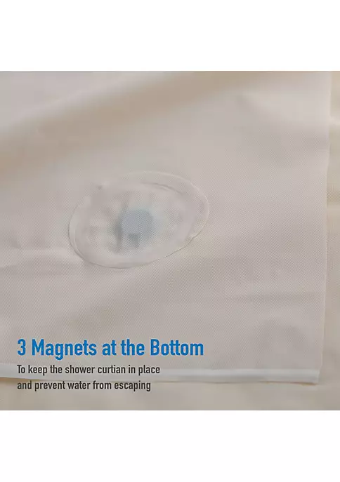 Bath Bliss Splash guard shower liner with metal eyelets grommets includes splash guard suction cups to keep water where it belongs in your tub, three base magnets to keep your liner weighed down and in your tub. 12 Metal reinforced eyelets prevent tears in liner which helps prolong life. Wipes clean with damp cloth. Mildew resistant material. Made of 100% PVC. 5.5 Gauge. Color: clear. Size: 72″x72″.