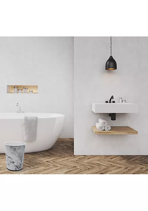 This Bath Bliss Trash Can is designed to compliment any home or bathroom décor. Made of stainless steel with a satin finish it is sure to glam up any space. The compact design is great for any small space such as a bathroom, office or dorm road. This wastebasket also has a coordinating toilet brush and holder, sold separately.