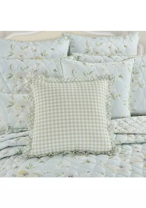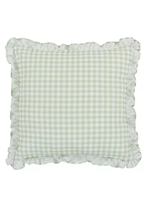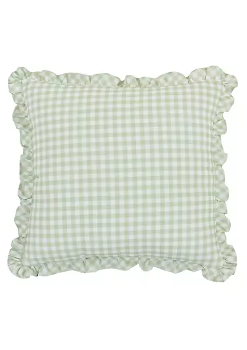 Add a refreshing accent piece to your space with the Cassia 18 Inch Square Throw Pillow. The soft green and white gingham check design offers unique shabby chic charm and balances your décor beautifully. Finished with a ruffle flange, all on plush 100% cotton, this accent pillow coordinates beautifully with the Cassia Quilt collection. 18″ Square Embellished Decorative Throw Pillow: 18-In. X 18-In.