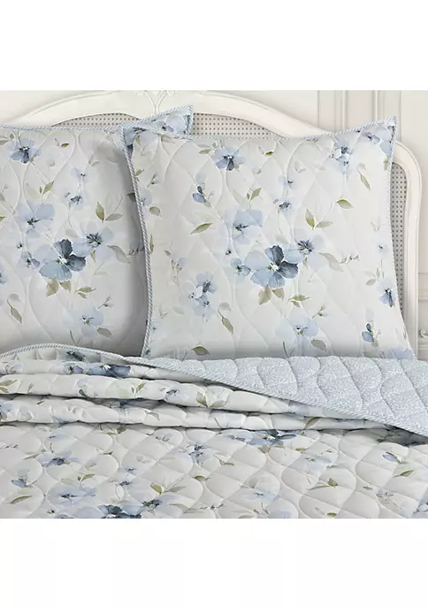 Bring your bedding ensemble to life with the Cecelia Euro shams. The beautiful blue, green, and white floral design is paired with a ditsy leaf print on the reverse and blue pinstripe binding for an updated shabby-chic feel. Quilted with a one-of-a-kind lattice stitch pattern for padded comfort on a grey-taupe cotton sateen fabric and finished with a hidden zipper on the reverse. Complete the set with the Cecelia Quilt collection. Euro Quilted Sham: 26-In. X 26-In.