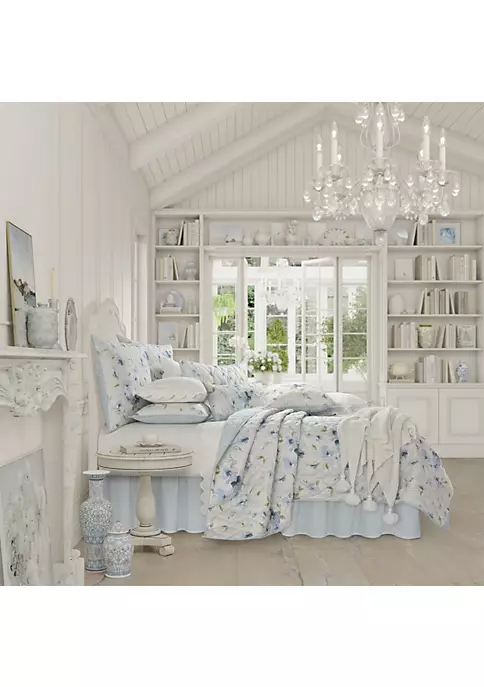 Tastefully dress your bed with the Cecelia cotton bed skirt. This timeless blue pinstripe print will give your bedding ensemble a fresh foundation. Gathered with fullness for a relaxed-fit ruffle all around and features a 2-inch overlap at the corners. Add a touch of modern vintage to your room with this dreamy bed skirt. Coordinates beautifully with the Cecelia Quilt collection. King Bedskirt: 82-In. X 79-In.