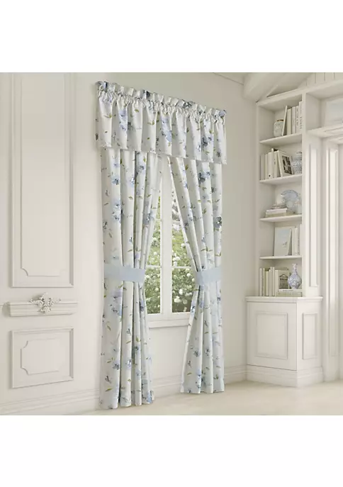 Bring English Garden style into your space using the Cecelia window valance. This engineered floral pattern boasts shades of blue and green with crisp white accents on a soft, grey-taupe color, with the bouquet at its center. This fresh sateen fabric is complete with a touch of crochet trim across the bottom. Style the look with the Cecelia window panels and quilt collection. Window Straight Valance: 18-In. X 88-In.