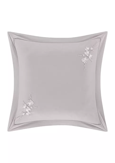 The Cherry Blossom Euro sham is elegant and timeless with a lovely embroidered floral design. This 26-inch Euro sham is 100% cotton, in a soft neutral gray color with contrasting raised embroidery in white, and is finished with a 2.5-inch flange and hidden zipper closure. Pair this pillow sham with the Cherry Blossom bedding set by Piper & Wright for a complete look.