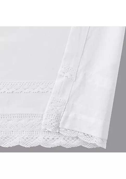 Classic cottage design blends modern with vintage seamlessly. Create the interior of your dreams with the Samantha panels. Featuring a double crochet trim on the top and at the hem, this beautiful white voile fabric will flow dreamily during a cool breeze. Coordinate tiebacks are included to create an open refreshed look. Complete the shabby chic look by adding the Samantha quilt collection. 84″ Window Panel Pair: 84-In. X 50-In.