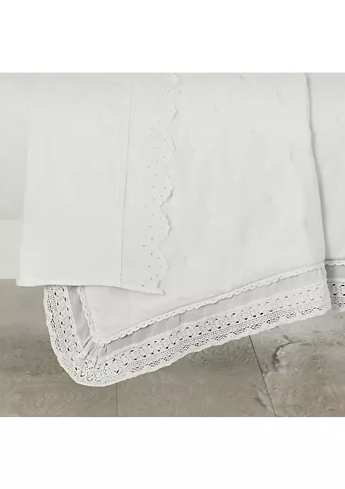 Bring the look of classic French linens to your bedroom with the Samantha. Combining soft, vintage-inspired voile fabric with a beautifully draping double crochet trim border around the edges, this fluffy quilt offers a fresh take on traditional design. For a perfectly styled ensemble, pair with Samantha shams and Piper & Wright comforter sets (sold separately). Full/Queen Quilt: 90-In. X 90-In.