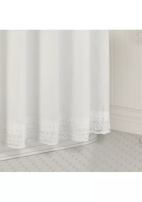 Add a timeless anchoring element to your cottage-inspired bathroom with the Samantha shower curtain. Featuring elegant white voile fabric with one-of-a-kind crochet trim detailing across the top and used to finish the hem. Easily complete the look and style with the Serra towels and Linden bathmat to create the bathroom oasis of your dreams (sold separately). Shower Curtain: 72-In. X 72-In.